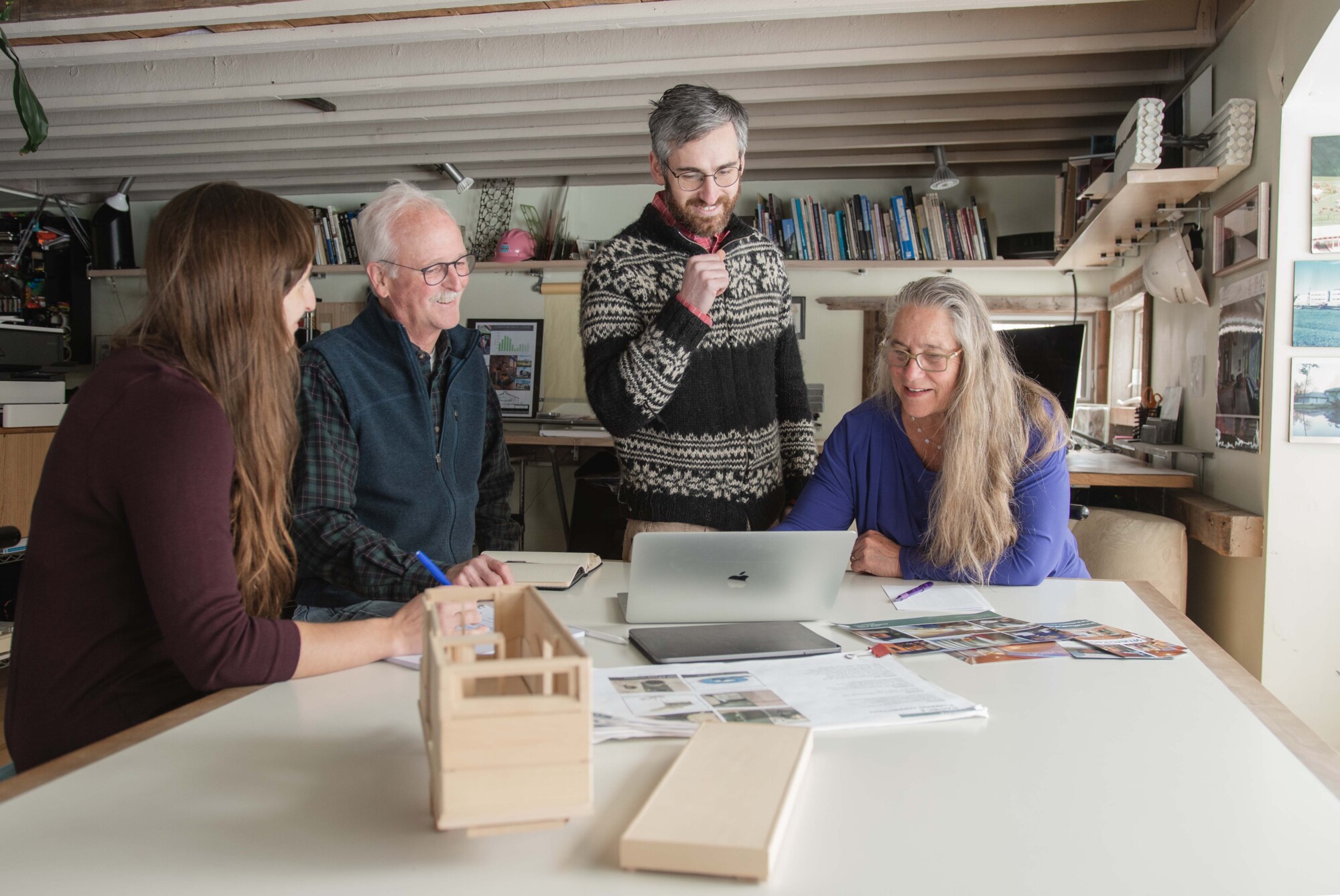 RJ Adler, director of growth at Wheelpad, meets with Victor Morrison, Luella Strattner, left, and Julie Lineberger right. Photo by Erica Houskeeper.